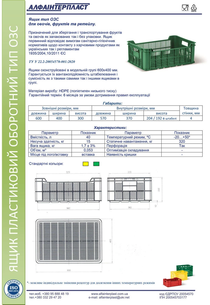 Ящик HDPE тип ОЗС 600х400х220 мм вторинний