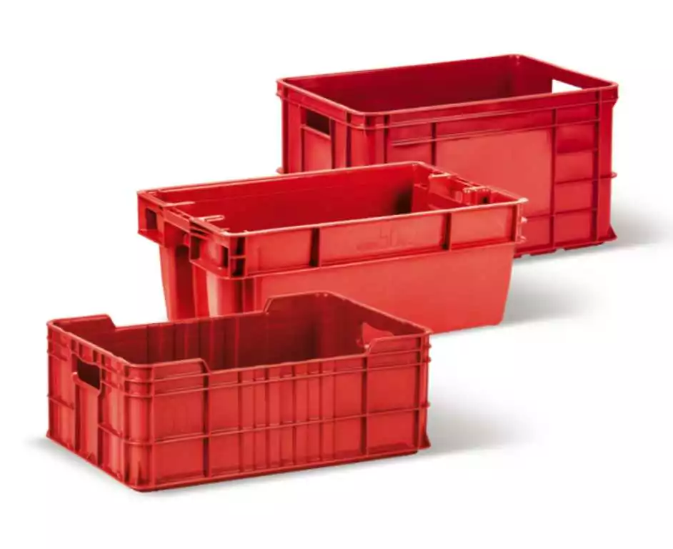 Пластикова тара виготовляється з лінеарного поліетилену (HDPE) і барвників, що відповідають умовам дотику з харчовими продуктами. Ящики призначені для зберігання і транспортування м’ясних товарів.