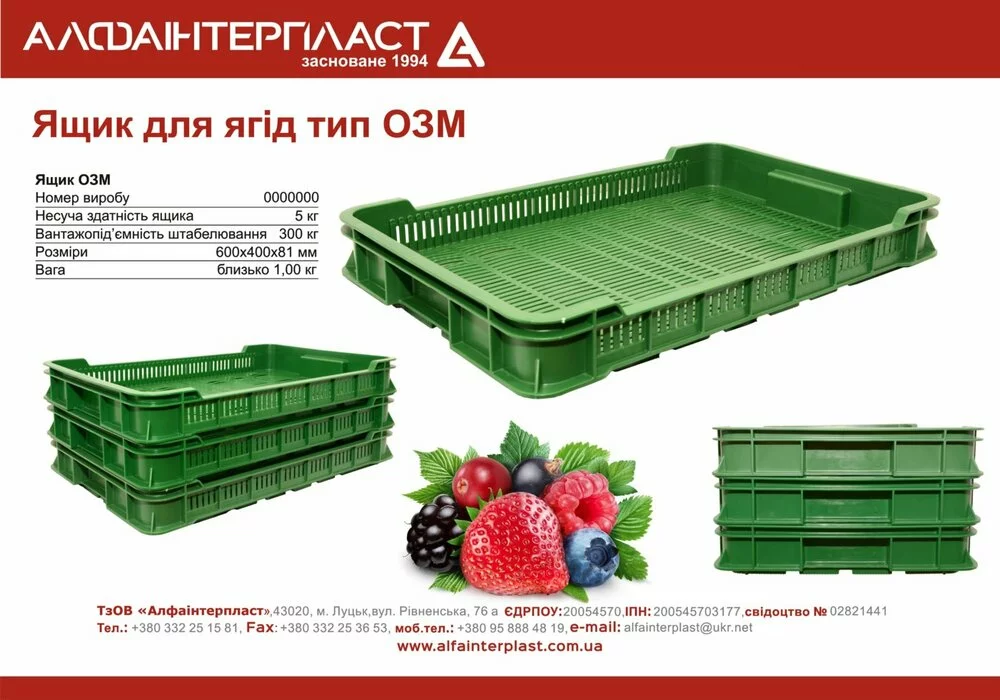 Компания «Алфаинтерпласт» реализует ящики для ягод собственного производства. Они предназначены для транспортировки, заморозки и хранения различных ягод.
